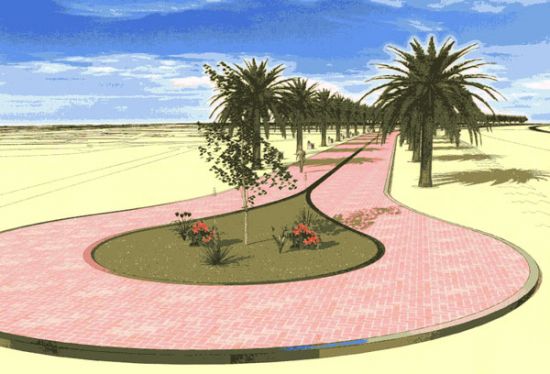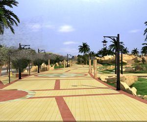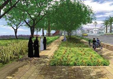 3- تأمين راحة مناخية ملائمة لرياضة المشي, كتأمين المرشات المائية لتلطيف الحرارة, وإضافة المسطحات الخضراء والأشجار.